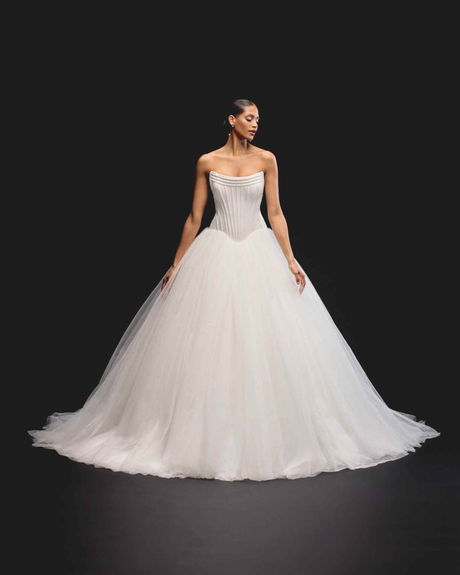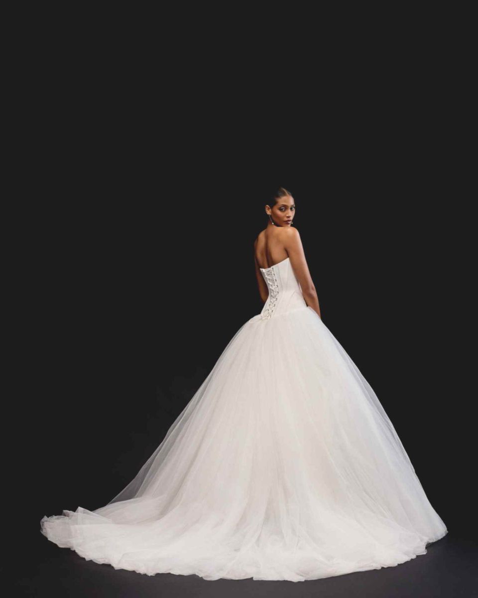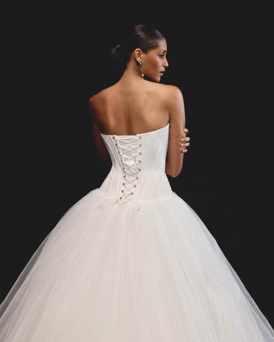 El vestido de novia Justin Alexander corset tul destaca por su silueta princesa con cuerpo estilo corsé y falda de tul en capas que aporta movimiento y volumen. Su escote palabra de honor realza la feminidad, mientras que la espalda ajustada con cordones ofrece un ajuste perfecto y sofisticado. Ideal para novias que buscan elegancia atemporal y un look de ensueño en su gran día.