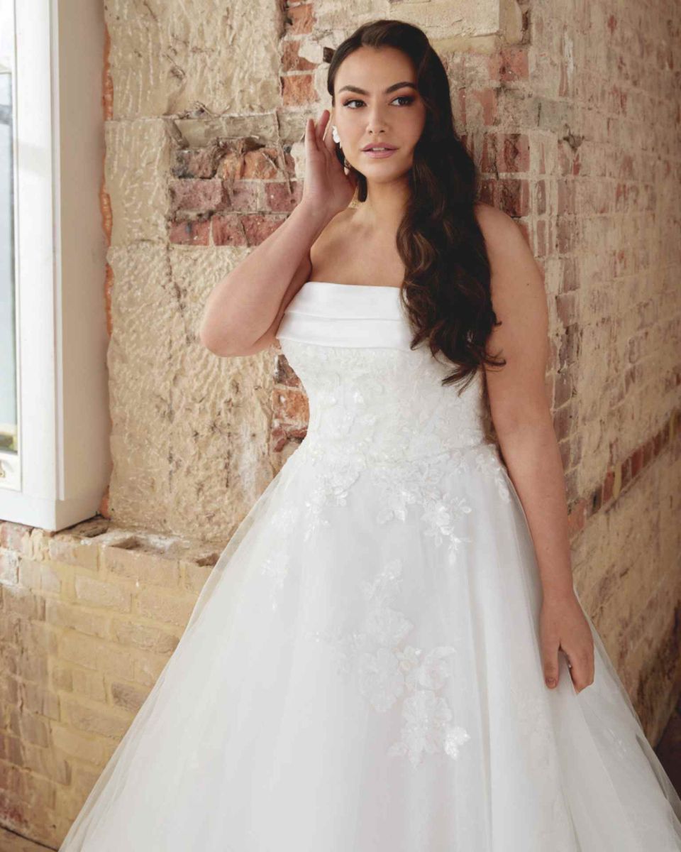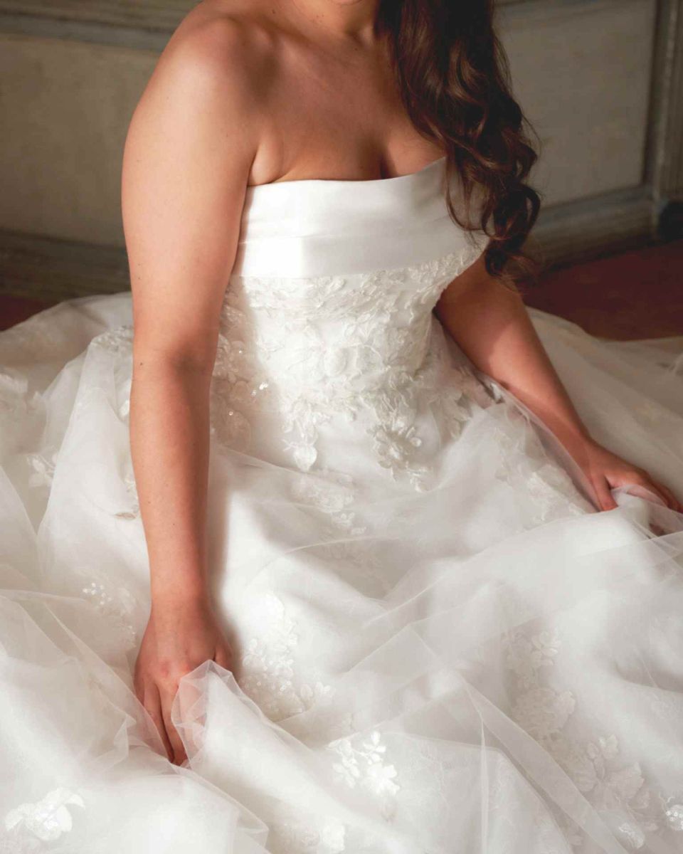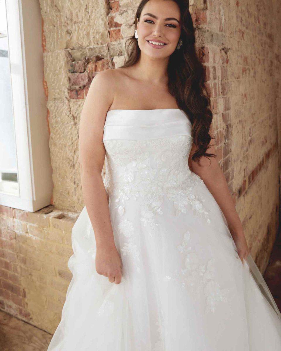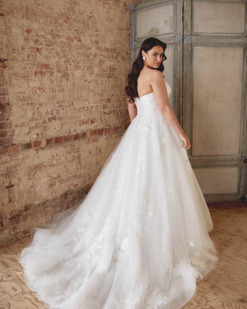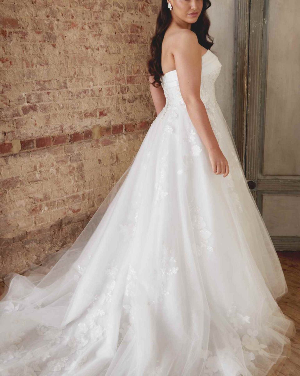 El vestido de novia Sincerity de Justin Alexander presenta un diseño romántico con escote palabra de honor y falda princesa en tul con delicados bordados florales. Una opción clásica y elegante que combina frescura y feminidad para el gran día.